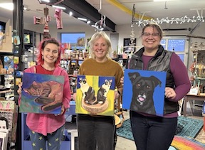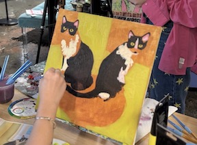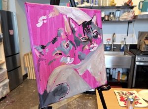 Students will receive a lightly pre-traced canvas of their pet, on either a 14×14” square canvas, or a 11×14” rectangle canvas depending on what best fits their image! Painting supplies and a printed reference image of the student’s pet will be provided. Students will leave with a finished painting of their pet!
